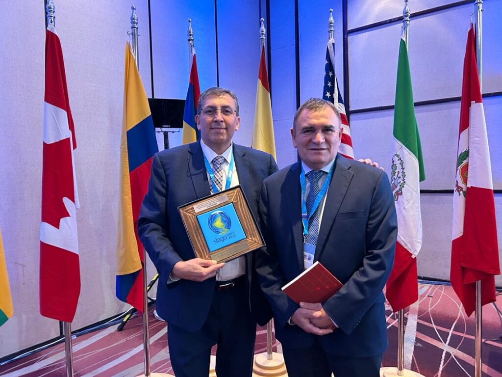 Entrega de reconocimiento a la Institución Dean Funes en Córdoba, Argentina. Recibe el reconocimiento en nombre de la institución la Dra. Belén Raiden por el Mejor Trabajo de Investigación SLAGO 2025.
